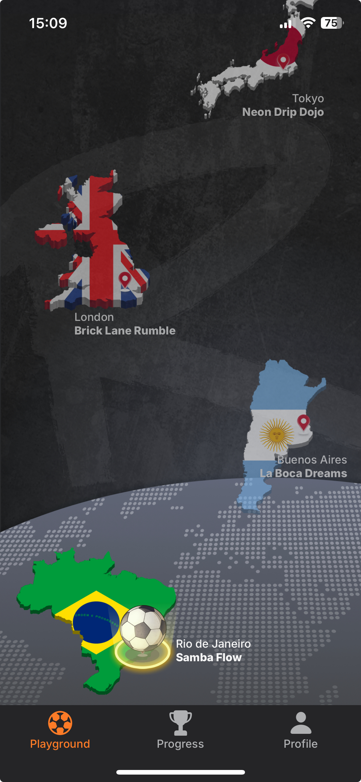 The Playgrounds Map is the heart of R10 Ronaldinho Playground: it’s where your freestyle journey begins. Each Playground represents a unique city-inspired world with its own atmosphere, rhythm, and challenges. As you progress, you’ll unlock new locations, new tricks, and new styles of play, just like traveling the globe through freestyle football.