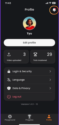 You’ll get notifications for important moments in your freestyle progress — like finishing a trick, unlocking a new Playground, hitting a milestone, or getting updates about new features and events.