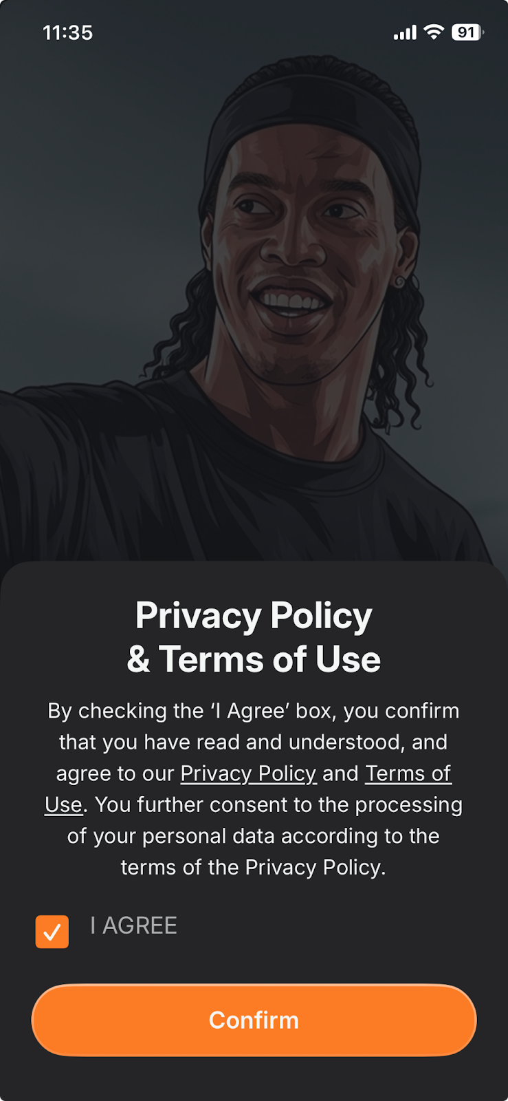 We ask you to agree to our Terms of Use and Privacy Policy to help keep R10 Ronaldinho Playground a safe, trusted space. This lets you know exactly how we use and protect your data: no misuse, no spam, no unexpected risks. You stay in control of your personal information, and it also ensures both you and R10 are properly protected under the law.