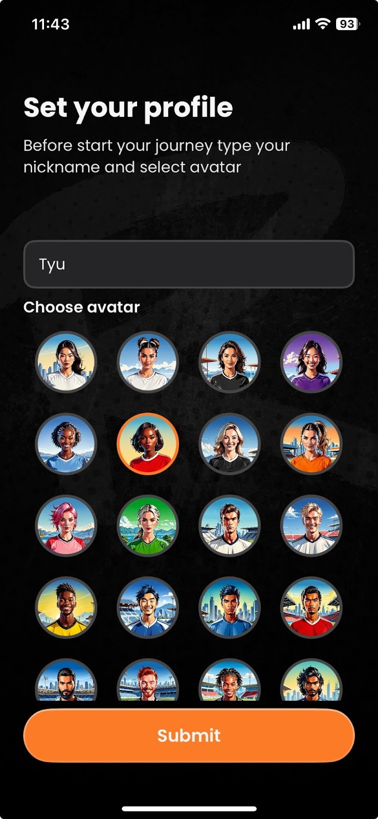 Después de registrarte mediante una de las opciones disponibles, se te redirigirá automáticamente a la página de configuración del perfil. Desde allí, solo tienes que elegir tu apodo, seleccionar tu avatar y pulsar Enviar para guardar tu perfil.
