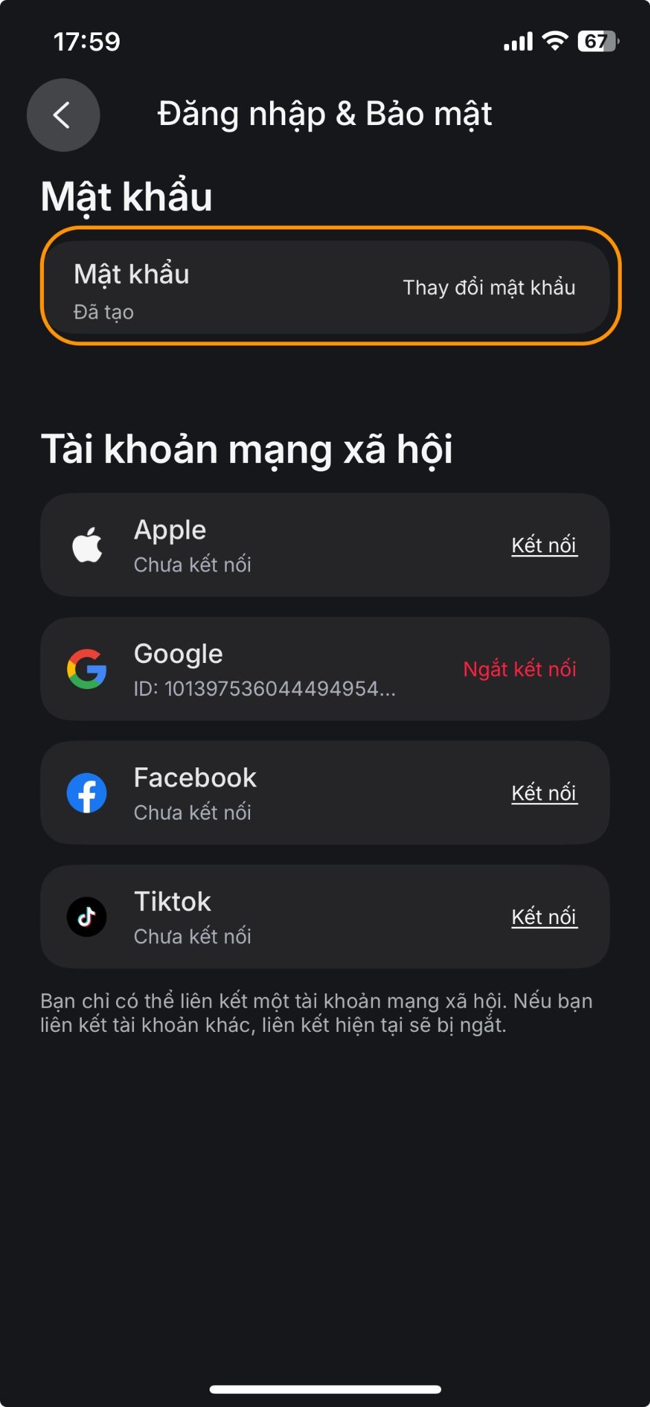 Bước 4: Nhấp vào “Thay đổi mật khẩu”