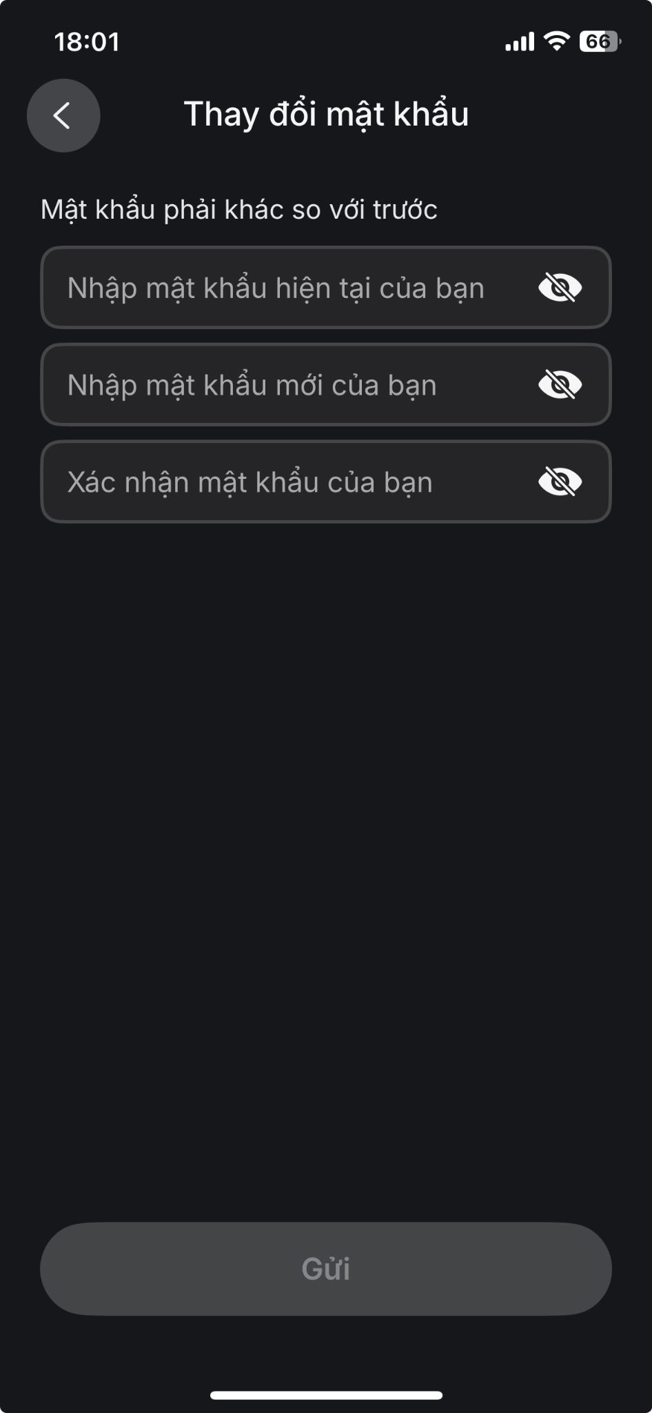 Bước 5: Nhập mật khẩu hiện tại của bạn, sau đó nhập mật khẩu mới mà bạn muốn sử dụng. Hãy chú ý kỹ đến các quy tắc về mật khẩu để đảm bảo quá trình cập nhật thành công.