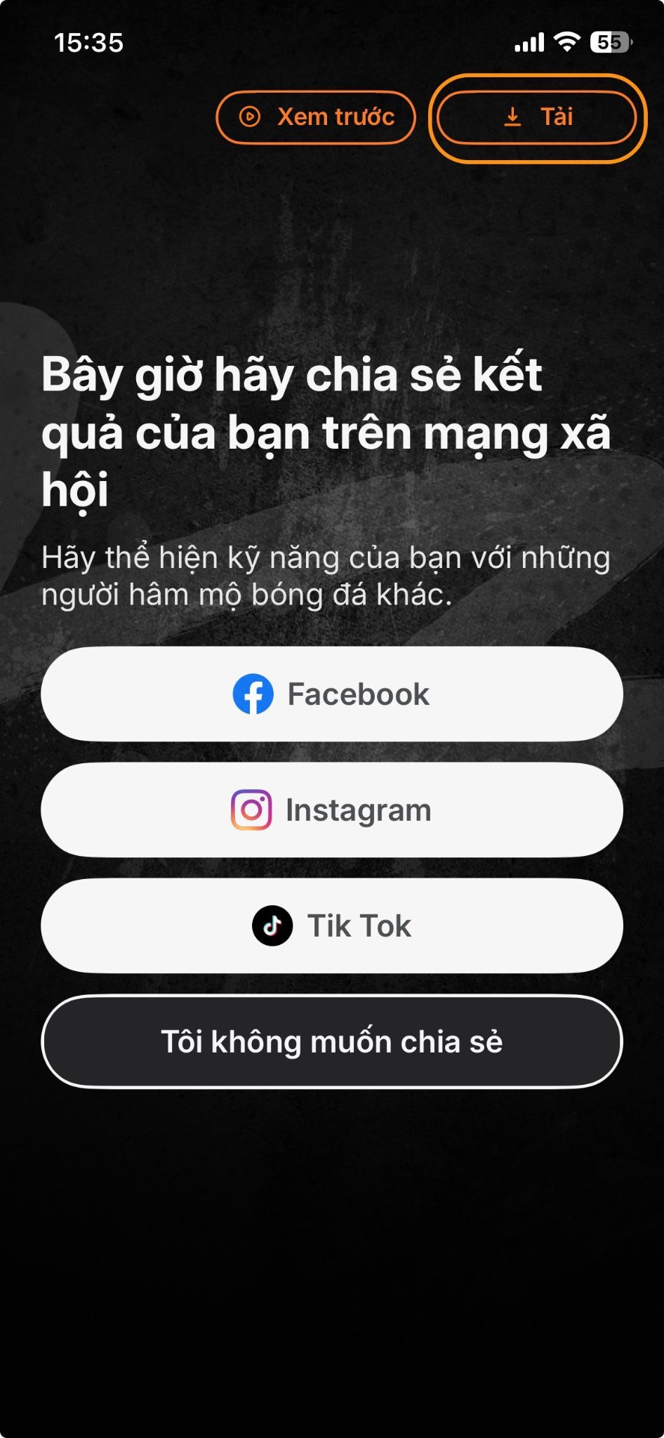 Bước 2: Hoàn thành bảng khảo sát tự đánh giá và chuyển đến màn hình chia sẻ.