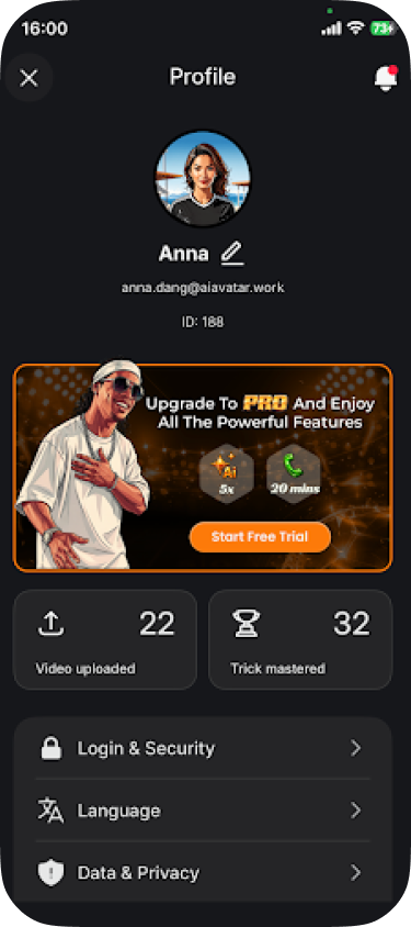 Tập luyện thông minh hơn, tiến bộ nhanh hơn và tận hưởng từng khoảnh khắc khi AI Ronaldinho hướng dẫn, động viên và giúp bạn đạt được mục tiêu. Đây không chỉ là huấn luyện, mà còn là trải nghiệm thú vị, cá nhân hóa và luôn sẵn sàng phục vụ bạn.